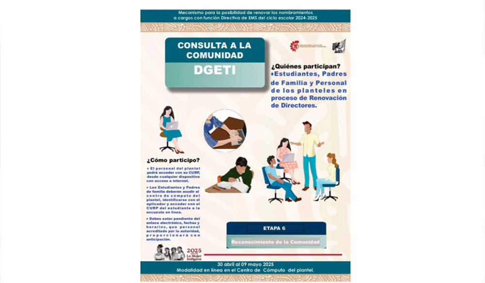 Dentro del Mecanismo para la posibilidad de renovar los nombramientos a cargos con función directiva de Educación Media Superior, la etapa 6 contempla la participación de alumnos, padres de familia y personal del plantel.