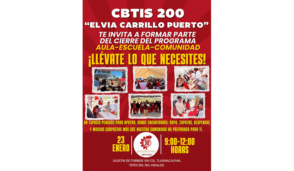 El CBTIS 200 “Elvia Carrillo Puerto”, a través del Programa Aula–Escuela–Comunidad, te invita a formar parte de su cierre de programa en el evento: