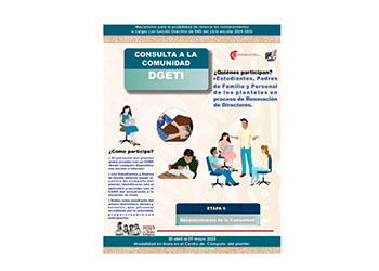 Dentro del Mecanismo para la posibilidad de renovar los nombramientos a cargos con función directiva de Educación Media Superior, la etapa 6 contempla la participación de alumnos, padres de familia y personal del plantel.